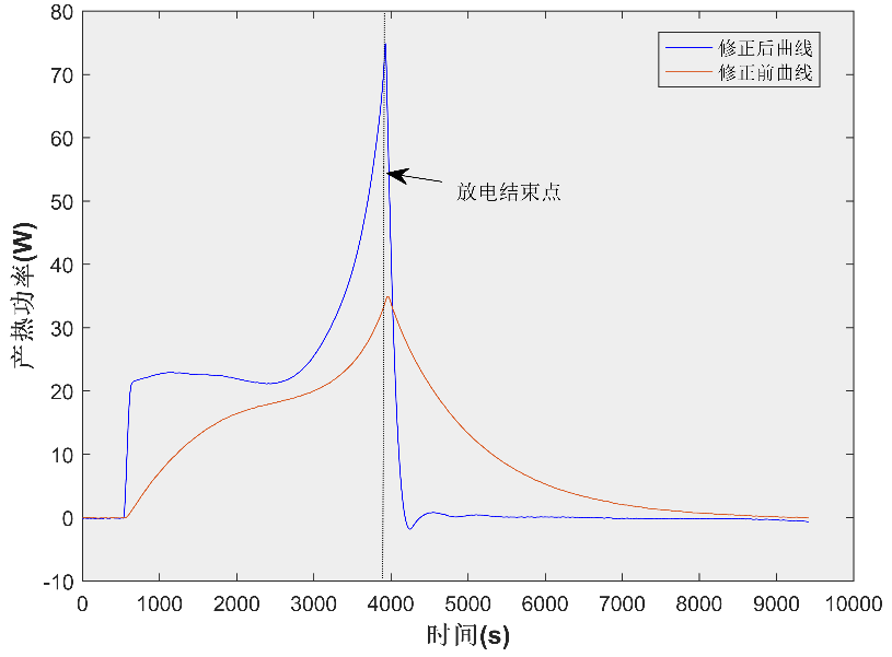 修正前后的产热功率曲线如图5所示,可以发现修正后的曲线几乎消除了放电结束后的功率衰减时间,能够更好地反映电池瞬态产热特性。