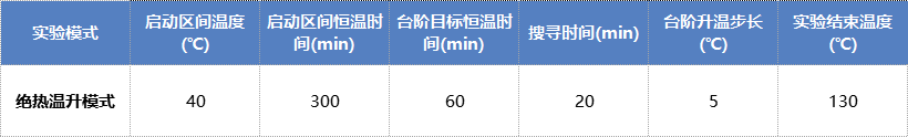 Step3:在操作软件上切换到“实验参数”界面,选择“绝热温升”模式,如表2-3所示设置实验参数;