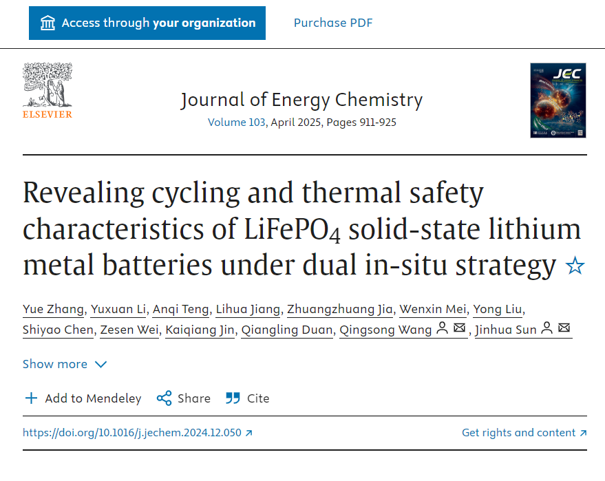 优秀论文|双原位策略下固态锂金属电池的循环和热安全特性