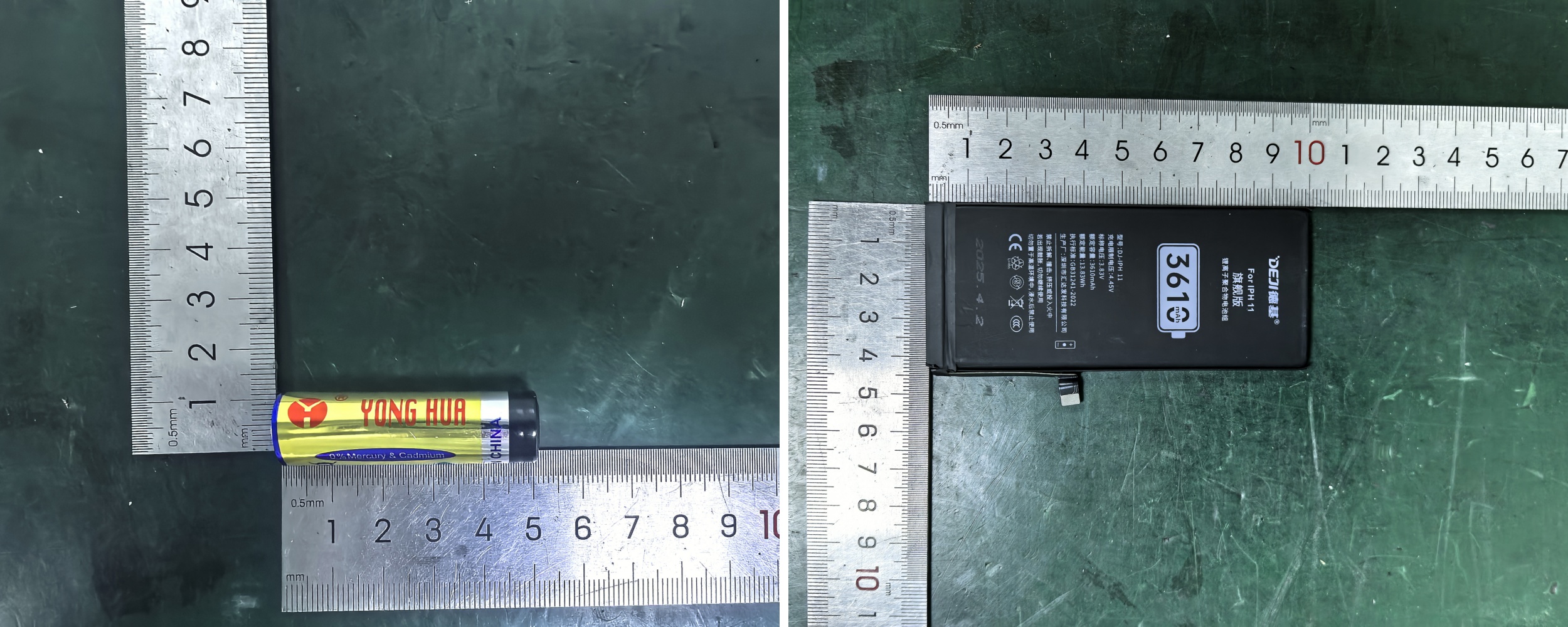 图2 5号碱性电池(左)及NCM三元手机电池(右)