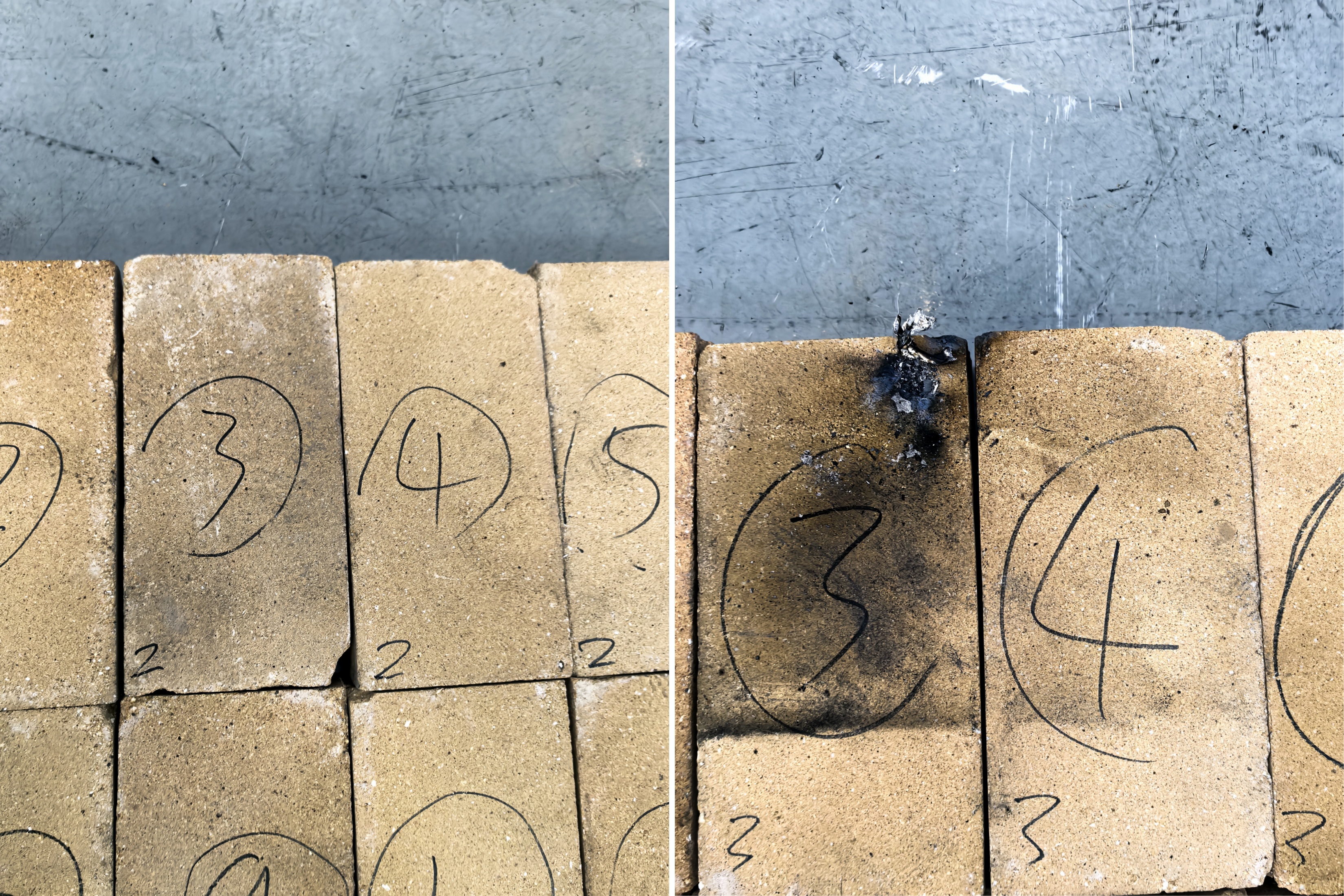 观察实验结果可以发现,无论是手机电池还是碱性电池,其热失控的剧烈程度均不足以破坏防火砖的整体结构,假如要探寻防火砖的安全下限或许需要更大容量或更高能量密度的锂电池进行测试。